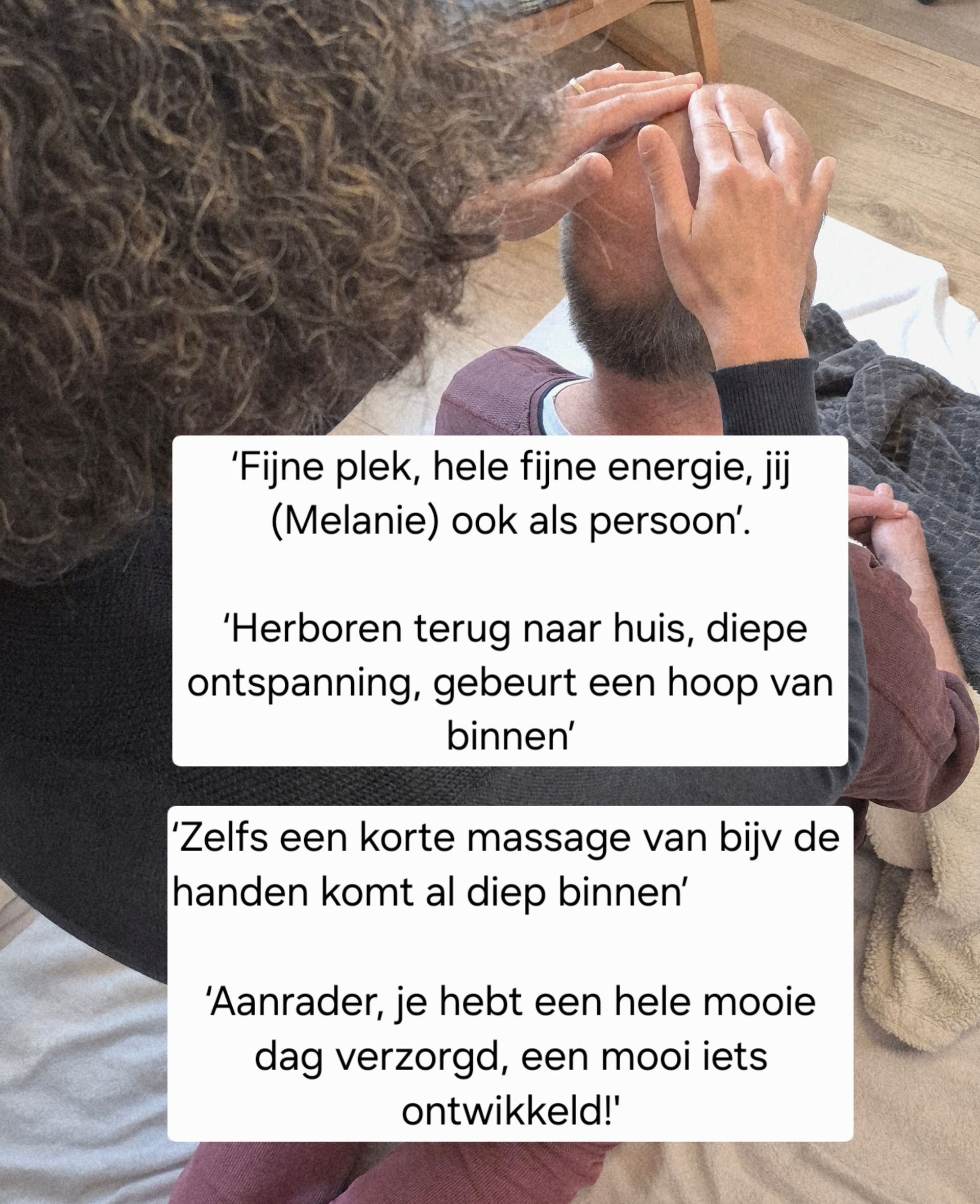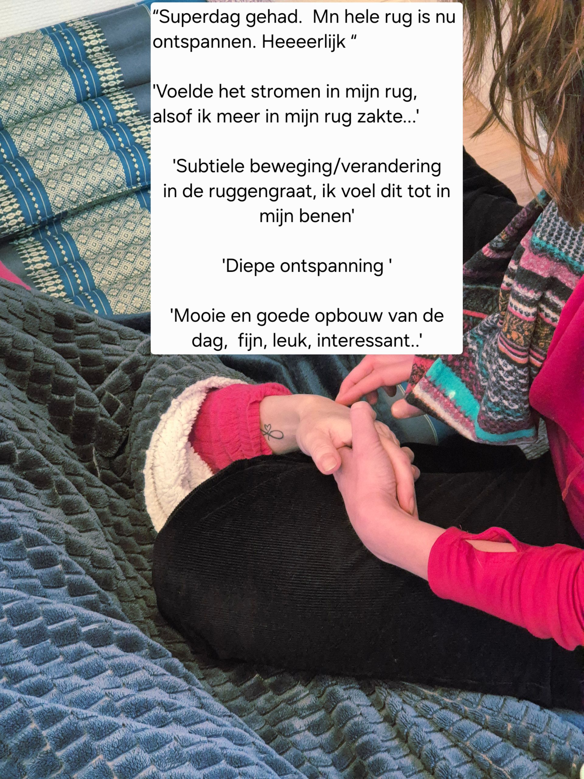 We werken met de reflexzones van de wervelkolom (op voeten, handen en hoofd) – een eenvoudige techniek met groot effect.