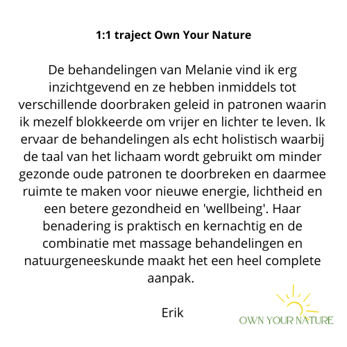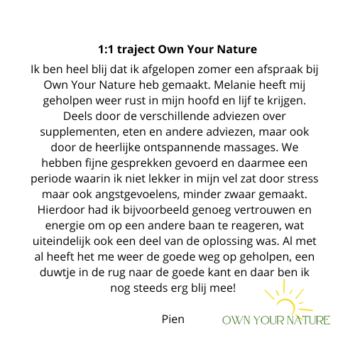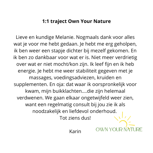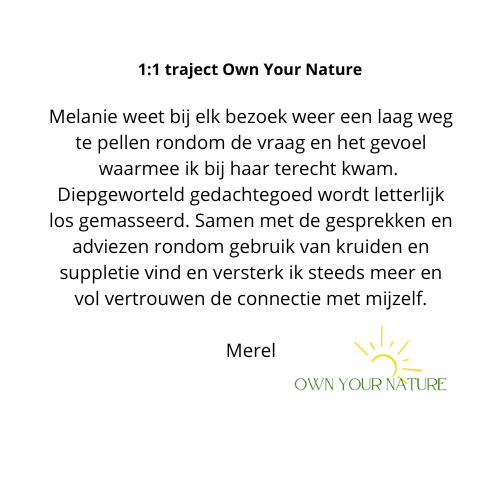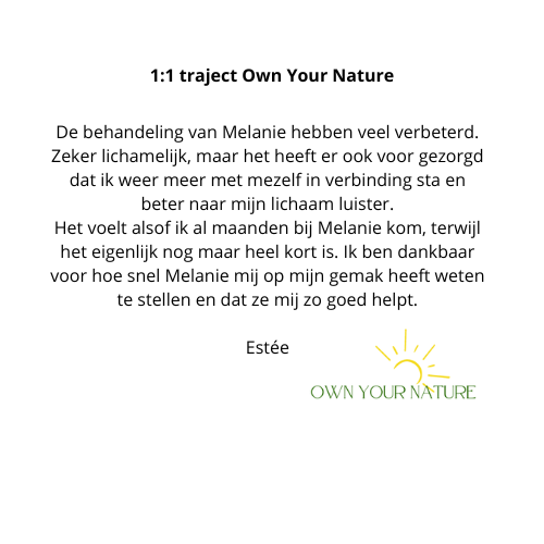 Je kunt 1 op 1 aan de slag met jou natuurgeneeskundig traject en leren hoe je kunt samenwerken met je lichaam